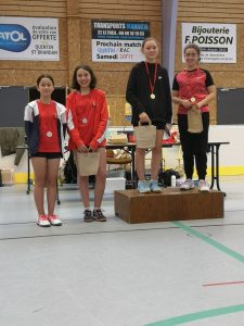 En minime Elite, Maiwenn GUEGUEN (Tregor Badminton) et Marine RAULT-BARGAIN (Brest) s’imposent. En minime Espoir, Paula DARCILLON (Tregor Badminton) et Elea LE CLAINCHE (Brest) s’imposent. En minime Espoir 3, Paula DARCILLON (Tregor Badminton) et Jules BOUNGNASENG (Rennes) s’imposent. En minime Espoir 1, Maiwenn GUEGUEN (Tregor Badminton) et Maxence REMY (Saint-Jacques) remportent un match. Côtés garçons, …