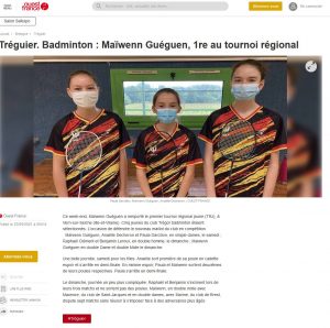 Vous êtes bien installés avec votre café, c’est le moment de jeter un œil sur les infos Tregor Bad de la semaine. On commence avec les résultats de nos jeunes qui étaient en déplacement le week-end dernier à Vern sur Seiche (l’occasion de découvrir la région avec le badminton…. donc là on est dans le …