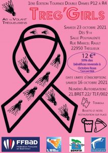 Le club des As du Volant Trégueusiens organise, le 23 octobre prochain, son premier tournoi 100% féminin La moitié des bénéfices sera reversé à Octobre Rose, pour la recherche contre le cancer du sein. Le tableau joué est le double, des classements R4 à P12. Les documents d’inscription sont disponibles sur l’événement ainsi que sur …
