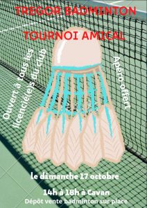 Chacun est encore dans la mise en place de l’organisation de la semaine mais pensons tout de même déjà au mois d’octobre ! Le Trégor Badminton vous propose de nous réunir toutes et tous à Cavan le dimanche 17 octobre de 14h à 18h (ou un peu plus longtemps pour prendre l’apéro ..) pour un …