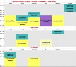 L’été arrive… A partir du 10 juillet les créneaux changent. A Tréguier : pas de créneaux durant l’été Tréguier : rien du tout durant l’été… jusque là, ça va Lannion : – du 3 au 7 juillet : créneaux habituels (sauf créneaux jeunes qui sont supprimés) – du 10 au 14 juillet : mardi et …