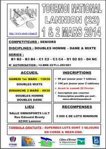 Le club organise son tournoi interne et sa soirée le 21 décembre. Au programme : L’après-midi 13h30 – 19h : tournoi interne « juste pour rire » à la salle Park Nevez : Les rencontres seront en double, Chaque match durera 10min (et non pas trois sets) Après chaque match, les paires seront mélangées Le soir à partir …
