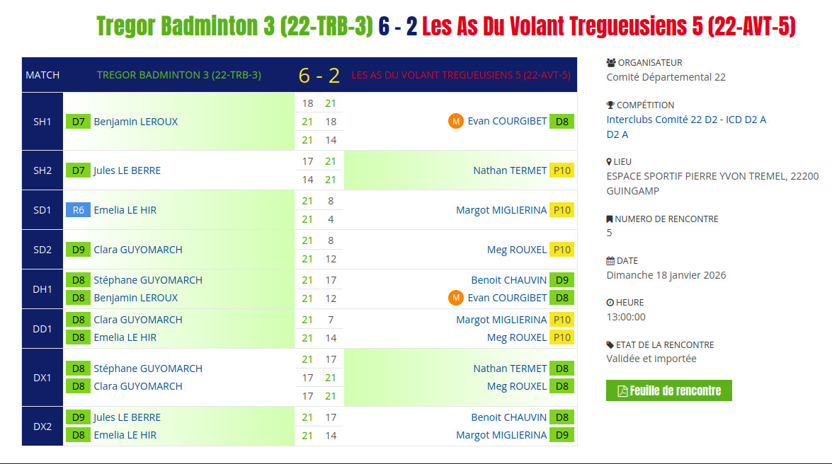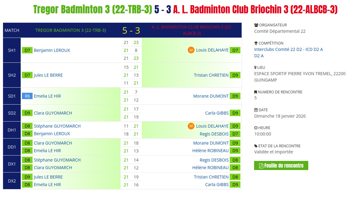 Pendant ce temps là, du côté des autres équipes il y a des victoires qui jouent en faveur du Trégor…